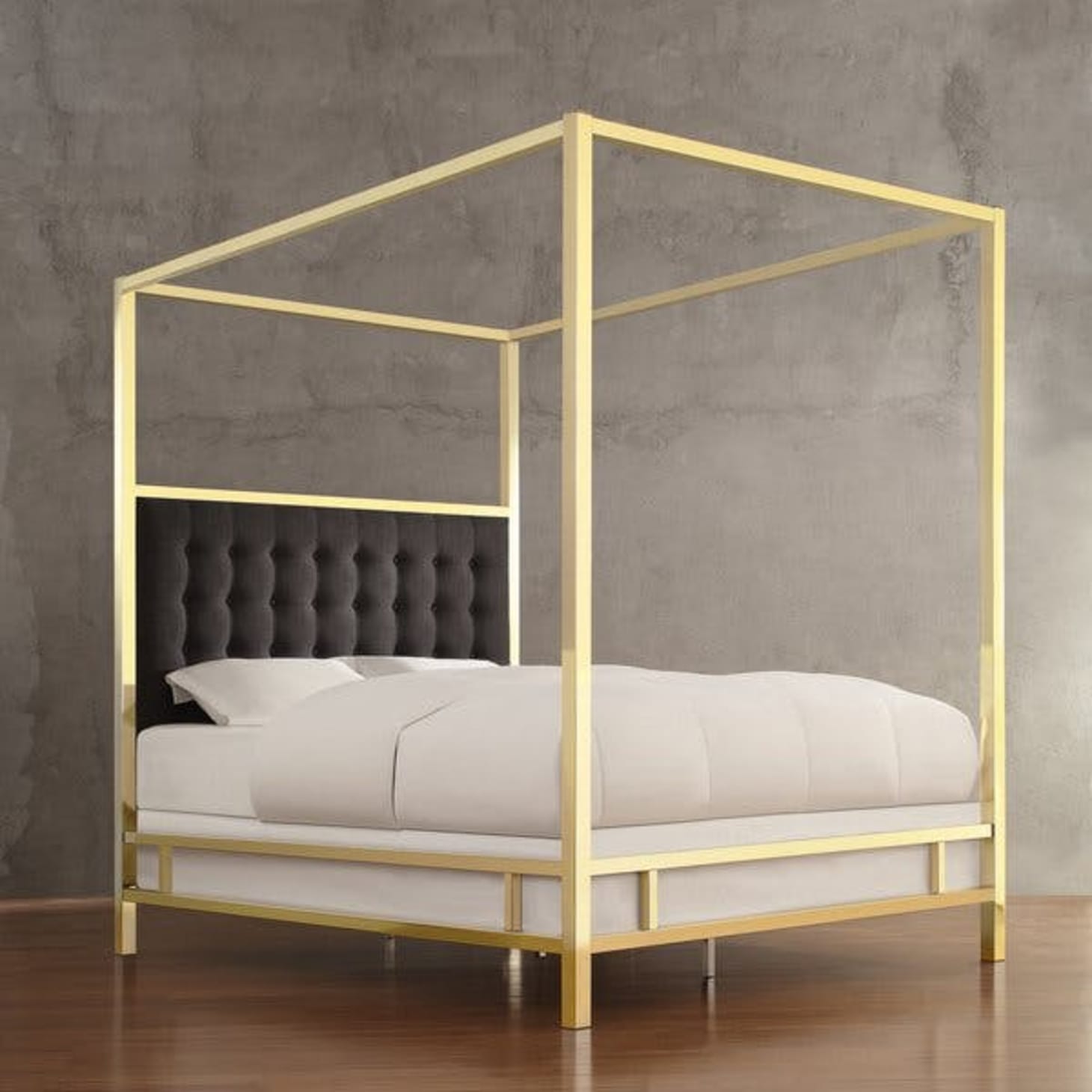Cal king size bed copper gold robyn california king bed. The celeste features matte gold electroplated plastic connectors that will add the perfect our beds are available in white, bronze, black and pink, and are available in various sizes. Gold knuckles accent the bed's canopy and the bed rests atop gold metal legs. Jom king size canopy bed frame black metal 4 poster mattress foundation modern post corner with storage for girls boys adults. Get the best deals on king size bed netting & canopies.